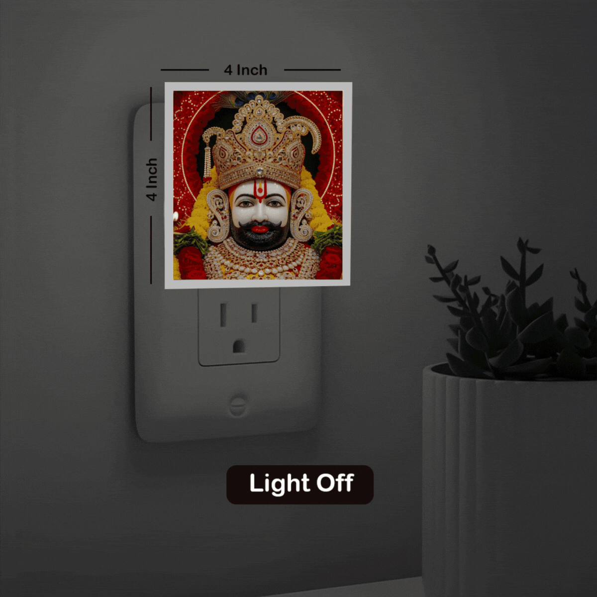 Bring divine calm into your room with this Khatu Shyam Night Lamp. It gives a soothing ambient glow that works for bedrooms, temples, or study tables without being harsh on the eyes. This 4x4 inch night lamp features your favorite photo beautifully illuminated, creating a warm and cozy ambiance.