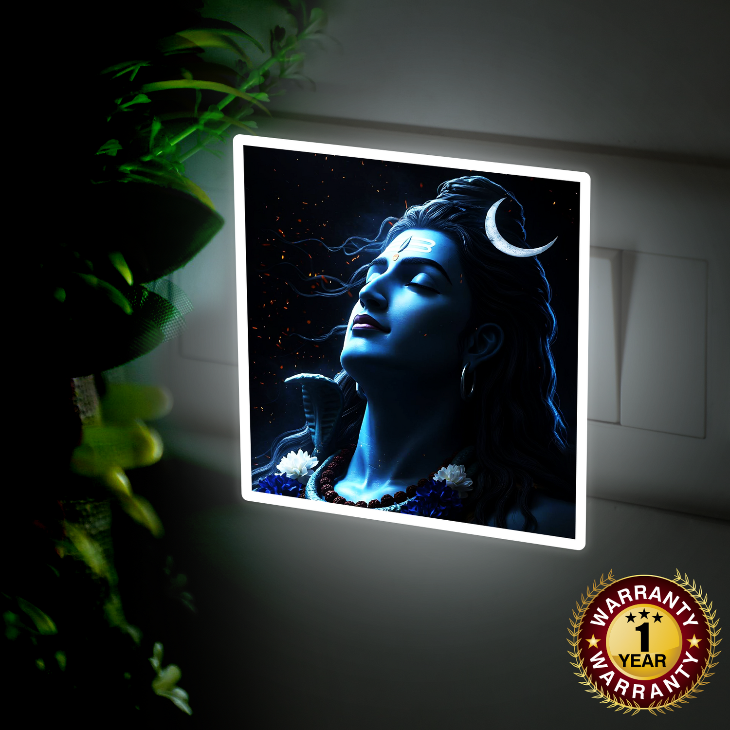 Bring divine calm into your room with this Mahadev Night Lamp. It gives a soothing ambient glow that works for bedrooms, temples, or study tables without being harsh on the eyes. This 4x4 inch night lamp features your favorite photo beautifully illuminated, creating a warm and cozy ambiance.